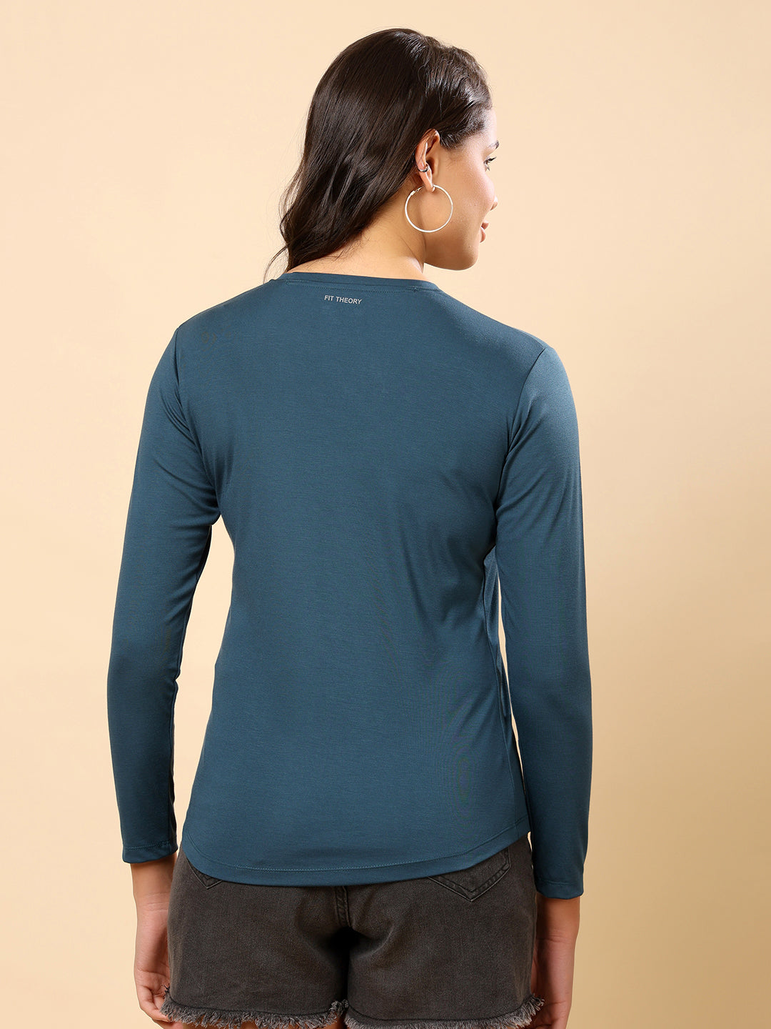 Women Moisture Wicking Solid Round Neck Full Sleeves T-shirt-Airforce Blue
