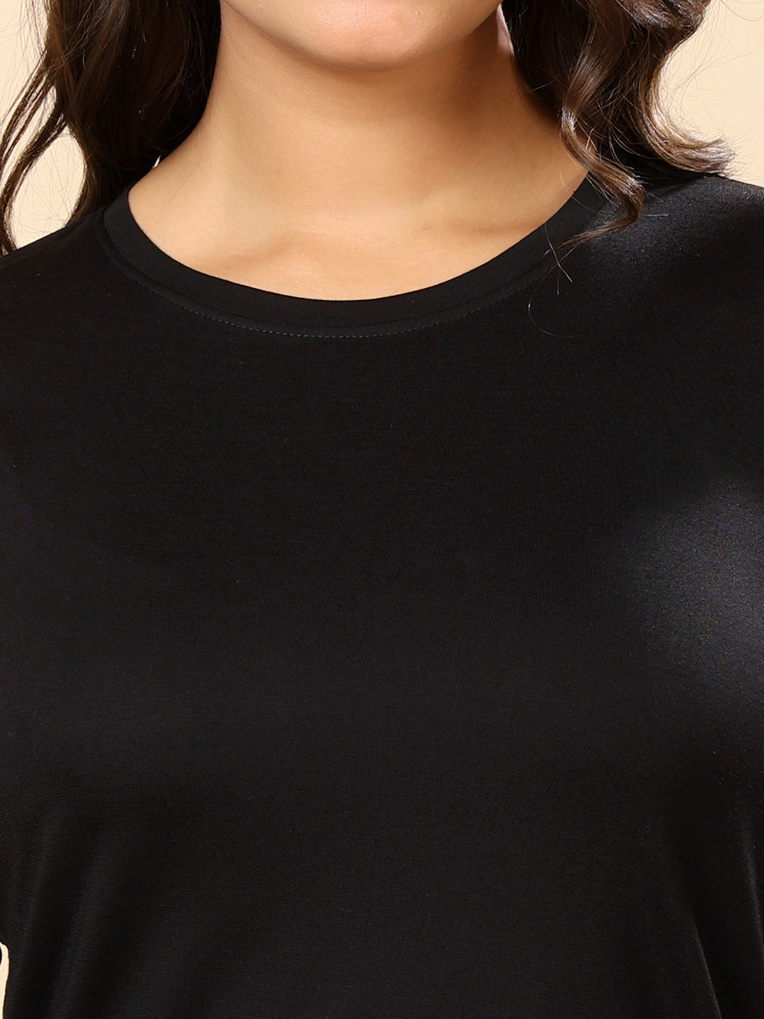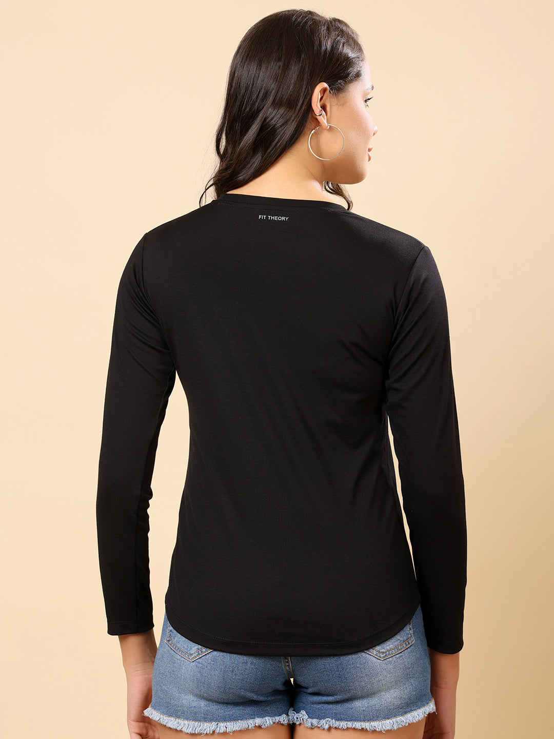 Women Moisture Wicking Solid Round Neck Full Sleeves T-shirt-Black