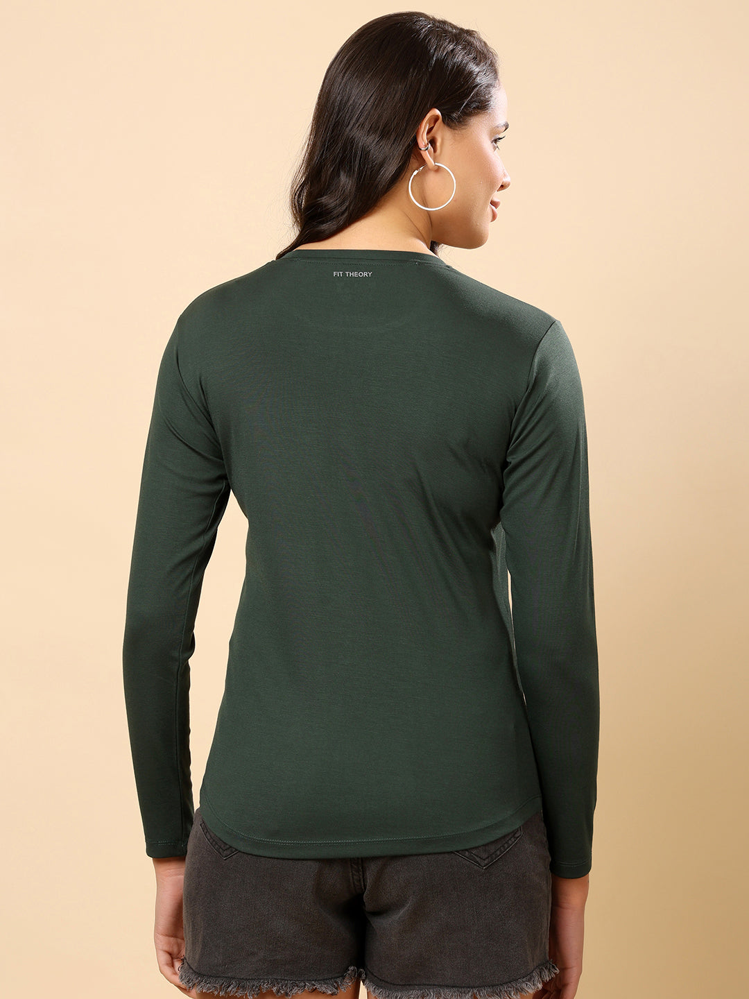 Women Moisture Wicking Solid Round Neck Full Sleeves T-shirt-Bottle Green