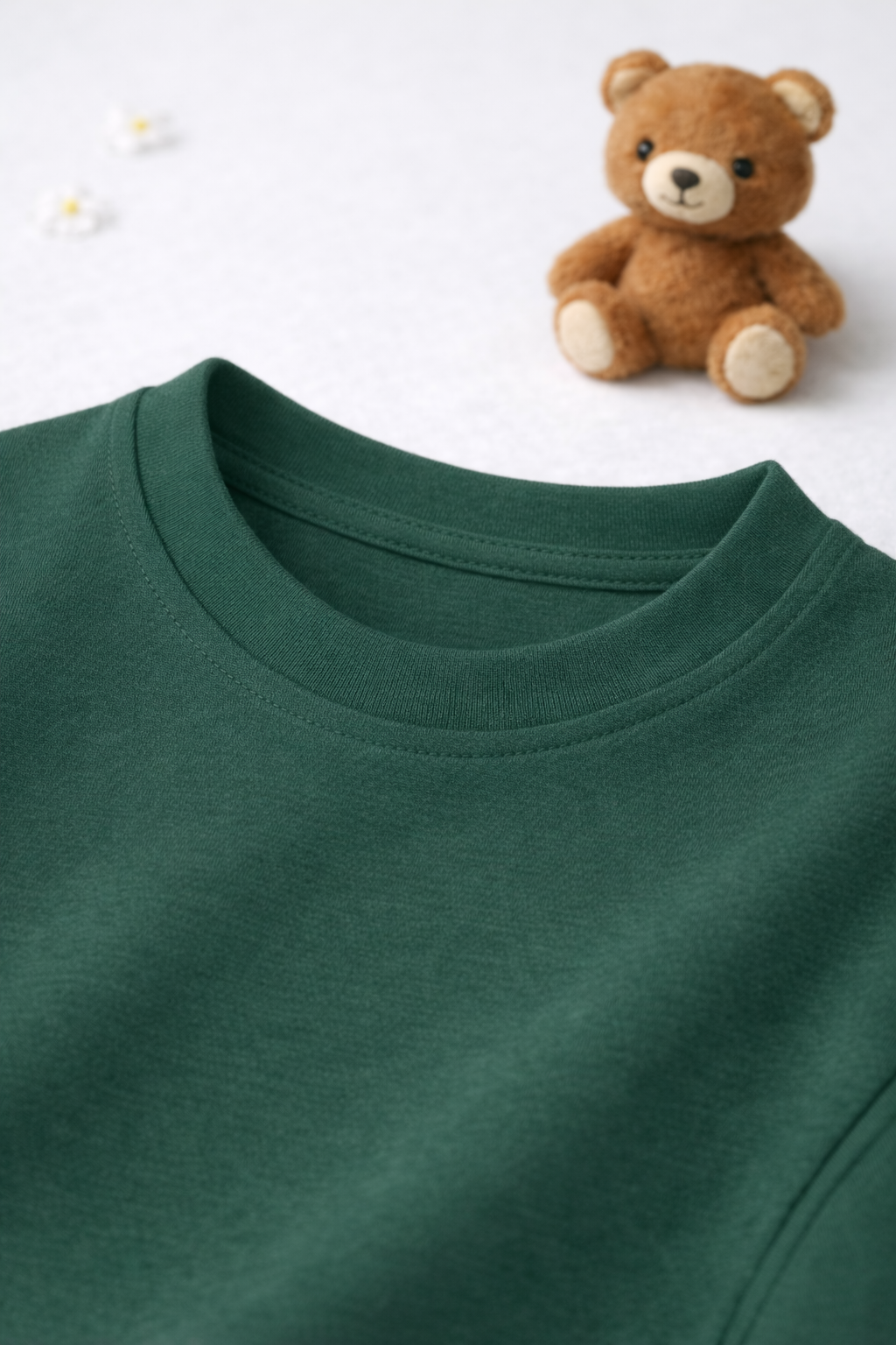 Kids Full Sleeves Solid round neck T-shirt-Bottle Green