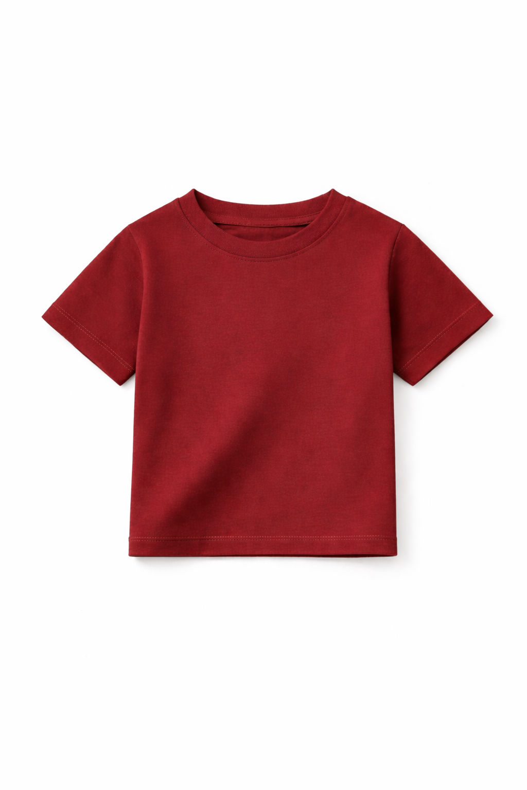 Kids Short Sleeves Solid Round Neck T-shirt-Maroon