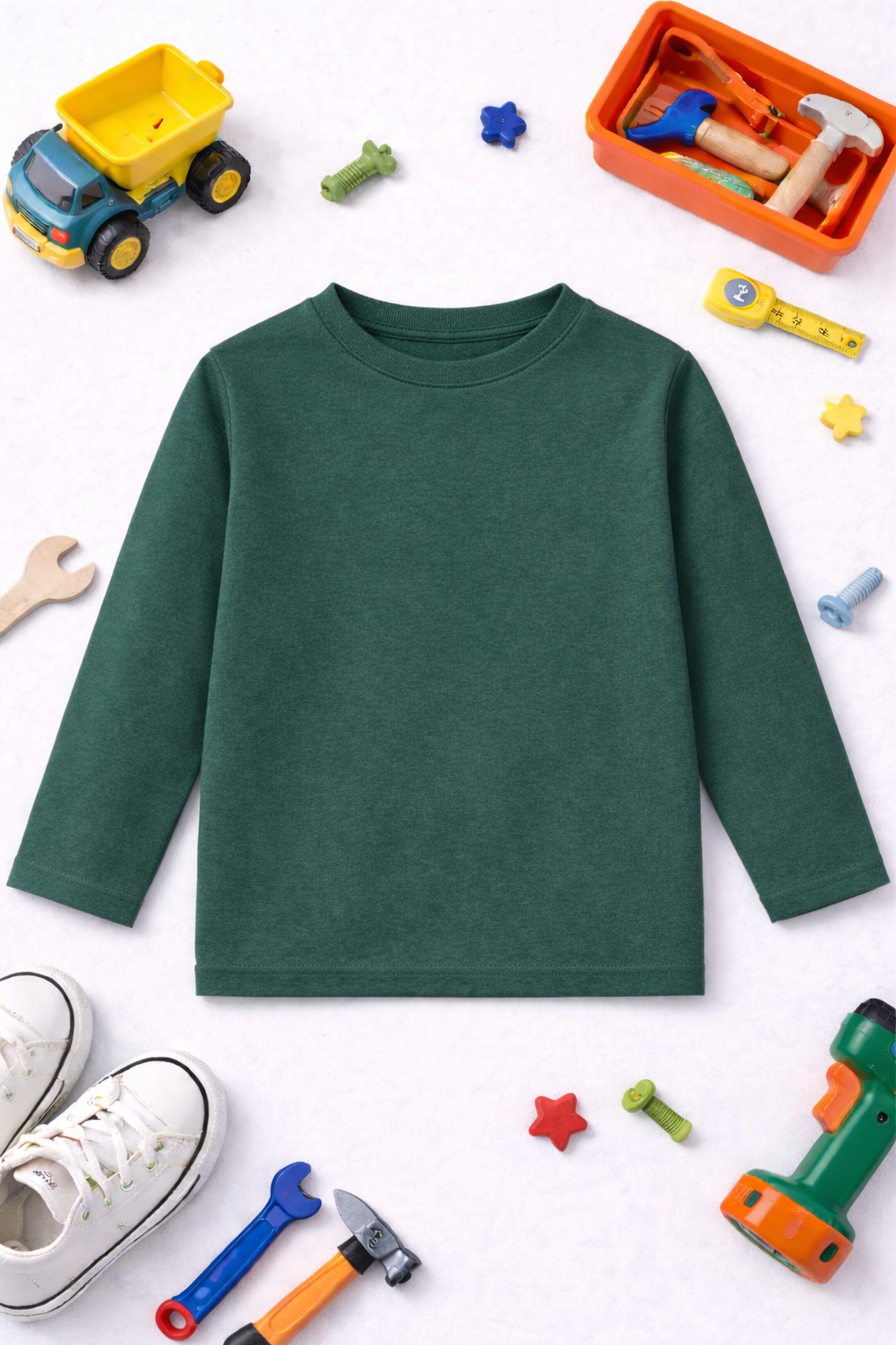 Kids Full Sleeves Solid round neck T-shirt-Bottle Green
