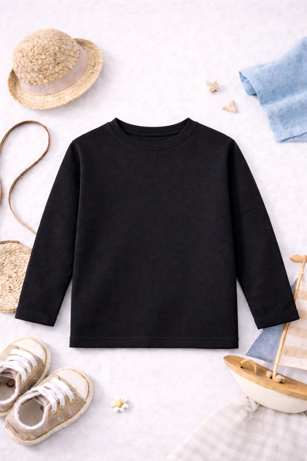 Kids Full Sleeves Solid round neck T-shirt-Black