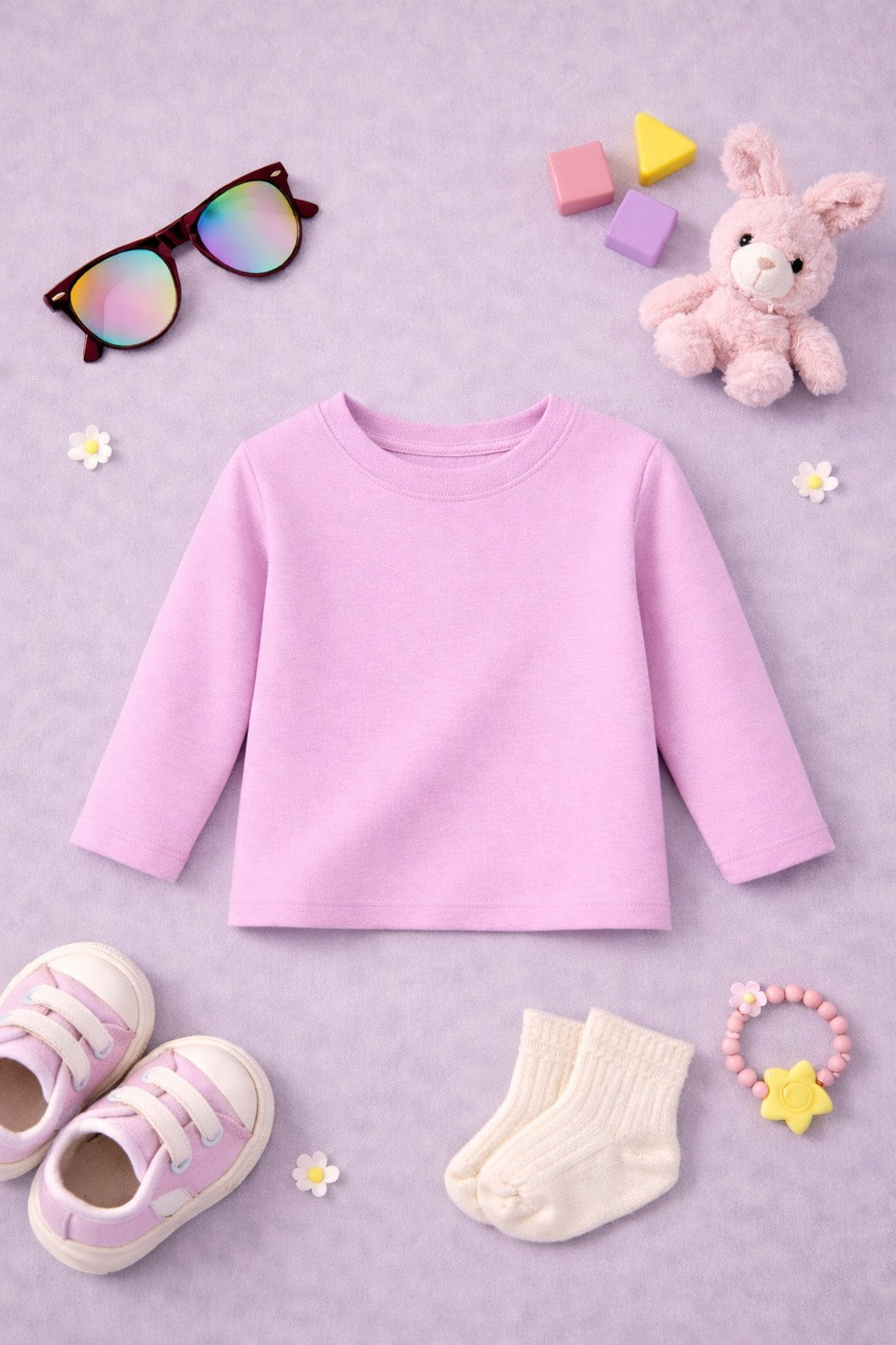 Kids Full Sleeves Solid round neck T-shirt-Lavender