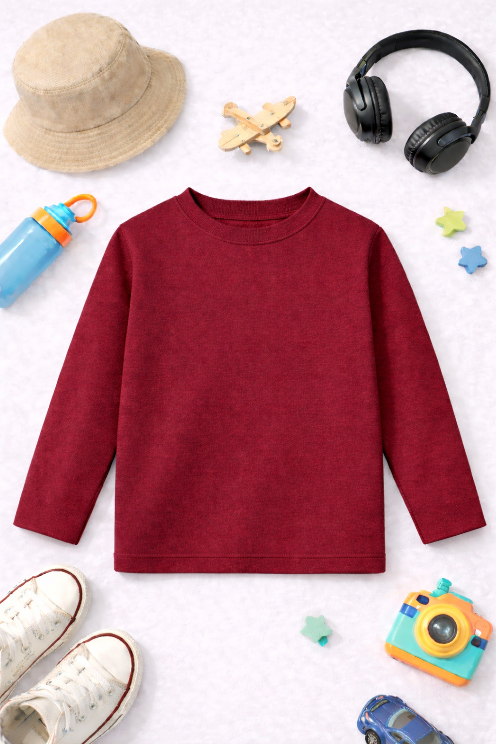Kids Full Sleeves Solid round neck T-shirt-Maroon