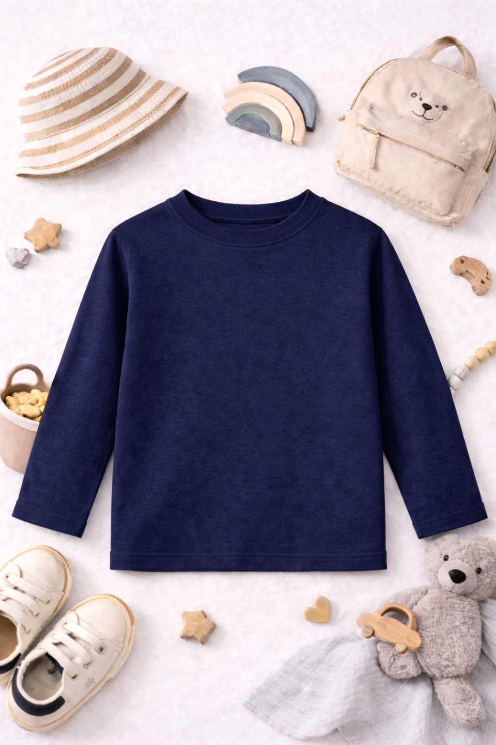 Kids Full Sleeves Solid round neck T-shirt-Navy Blue
