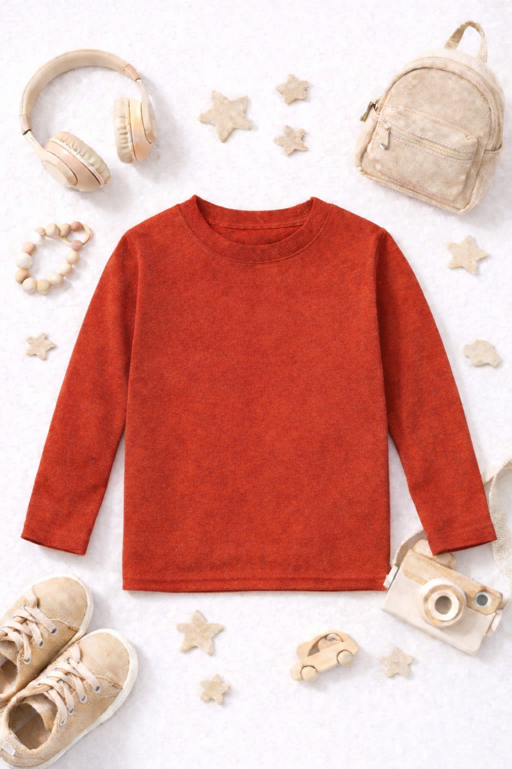 Kids Full Sleeves Solid round neck T-shirt-Rust Red