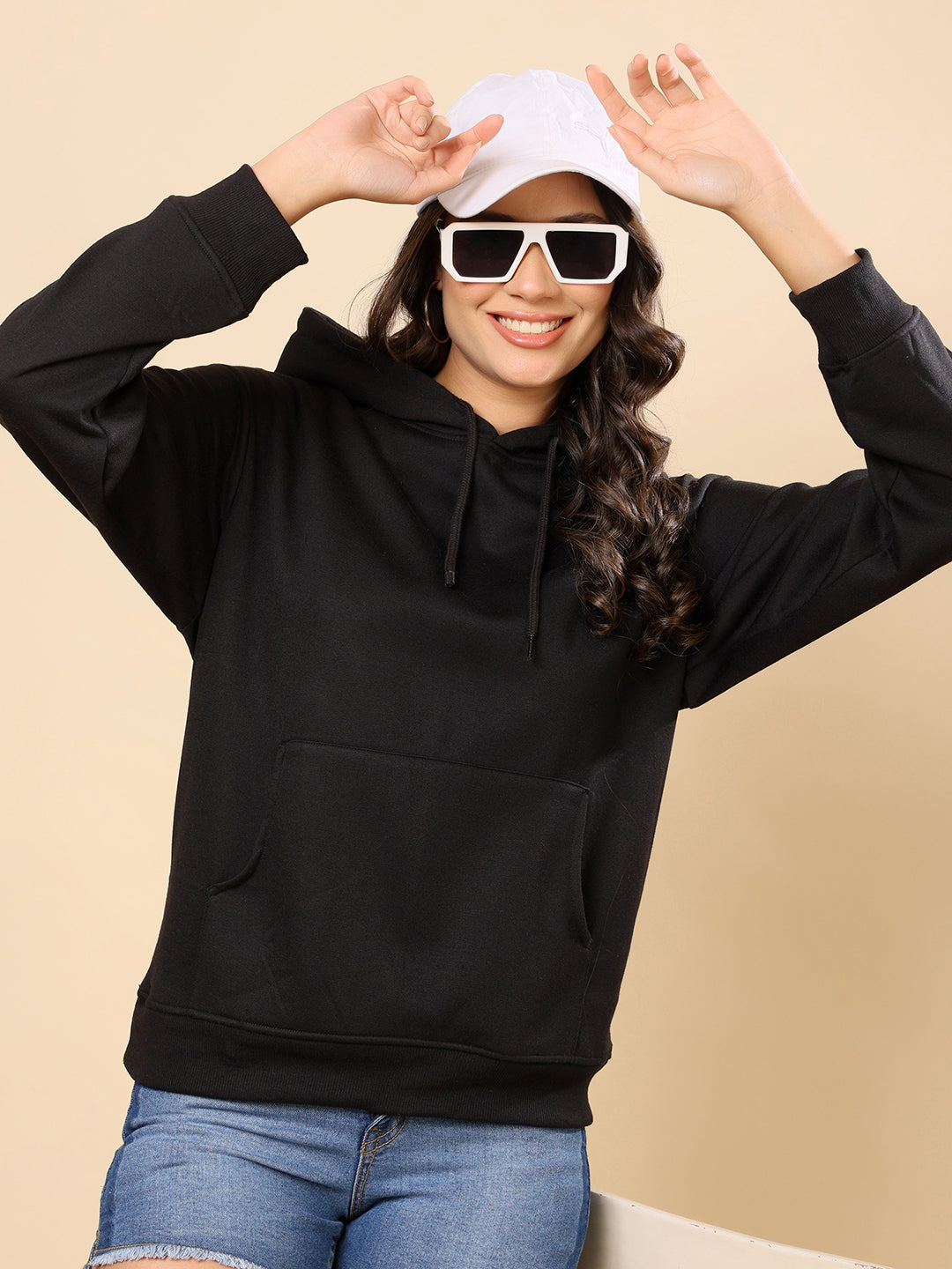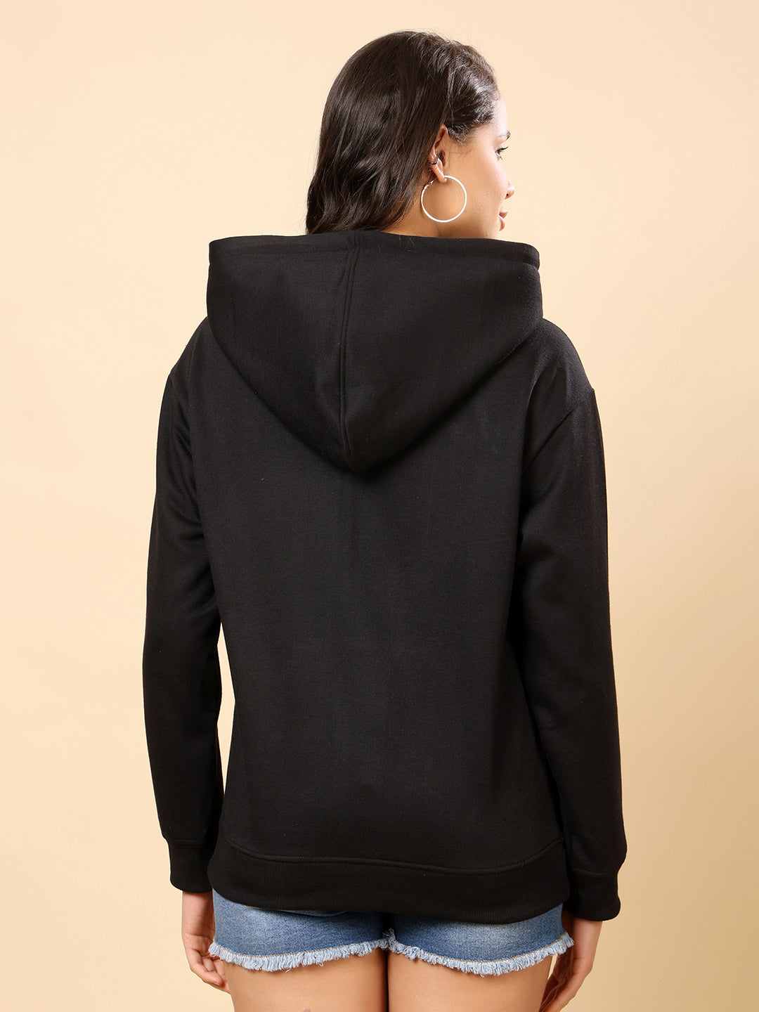 Women Relaxed Fit Hooded Sweatshirt-Black