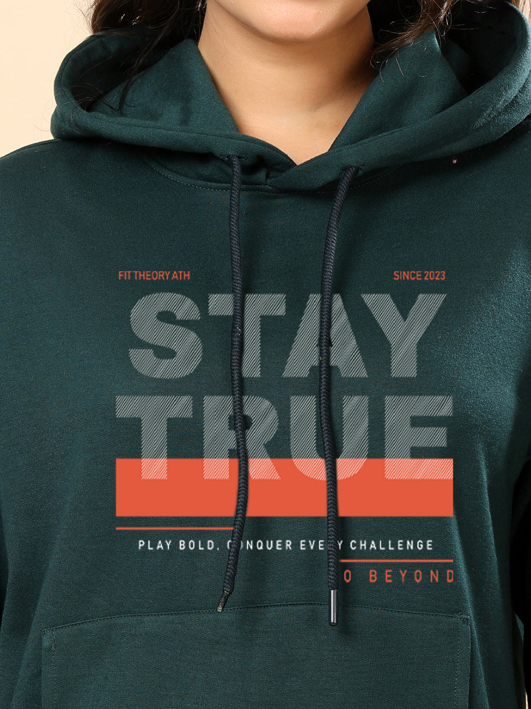 Women Relaxed Fit Hooded Sweatshirt-Bottle Green Stay True