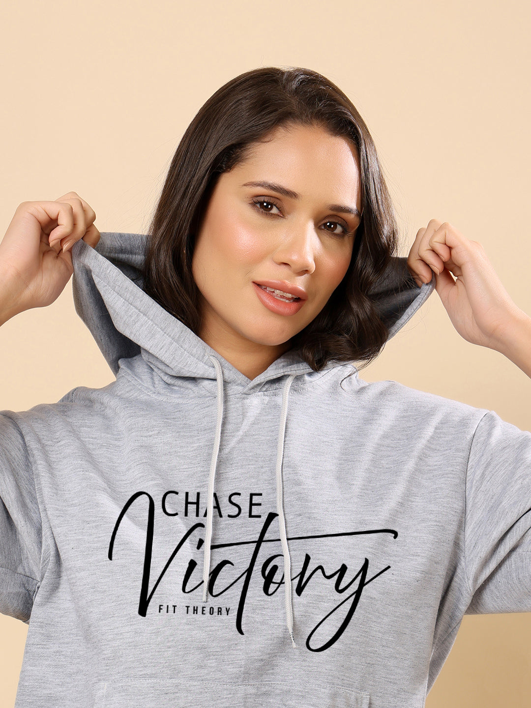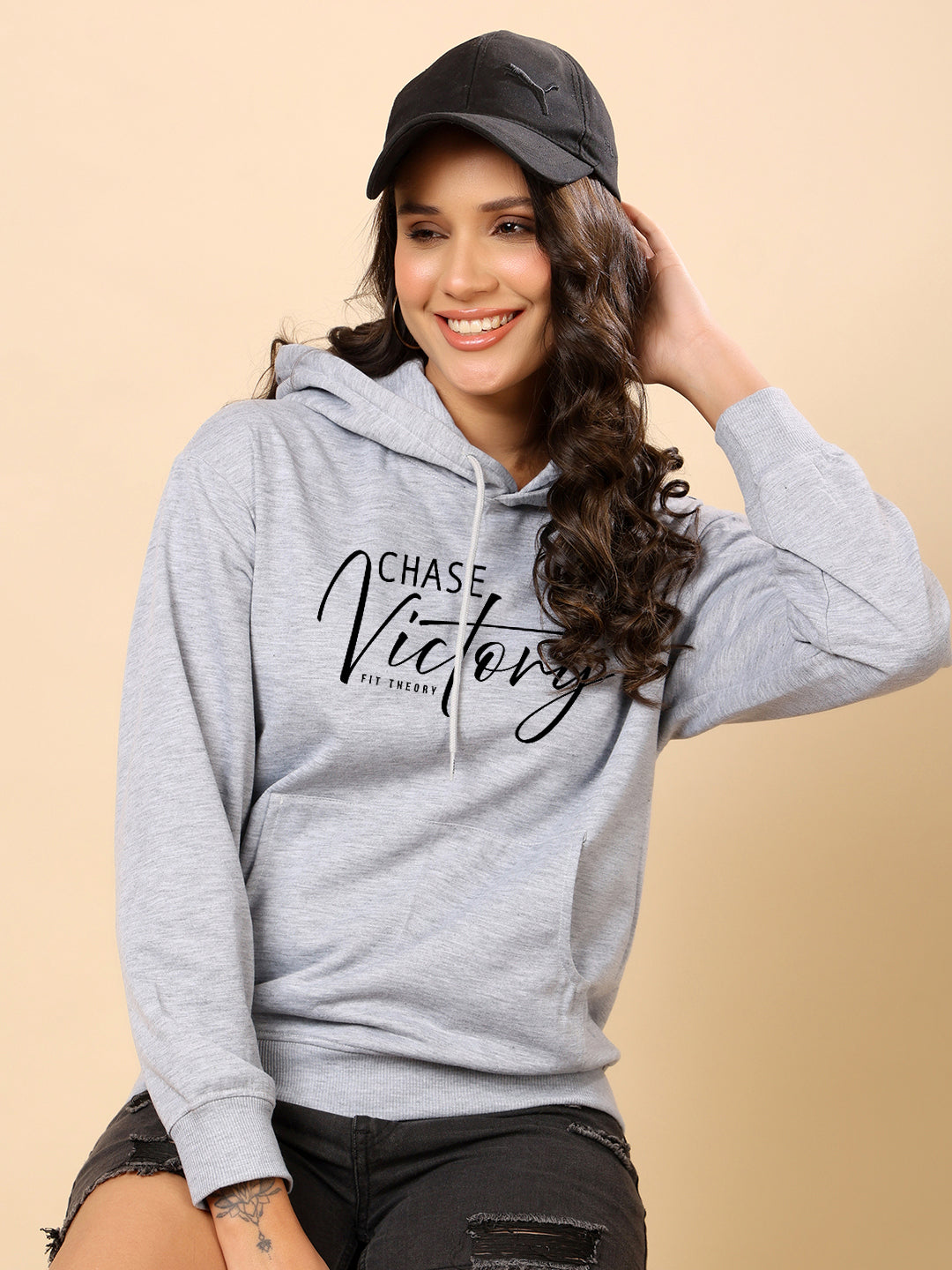 Women Relaxed Fit Hooded Sweatshirt-Grey Chase Victory